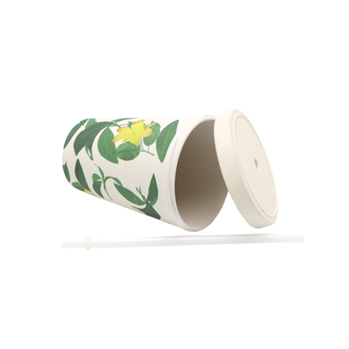 Bamboo fiber cup whit lid&PVC strew(spiral openning) |